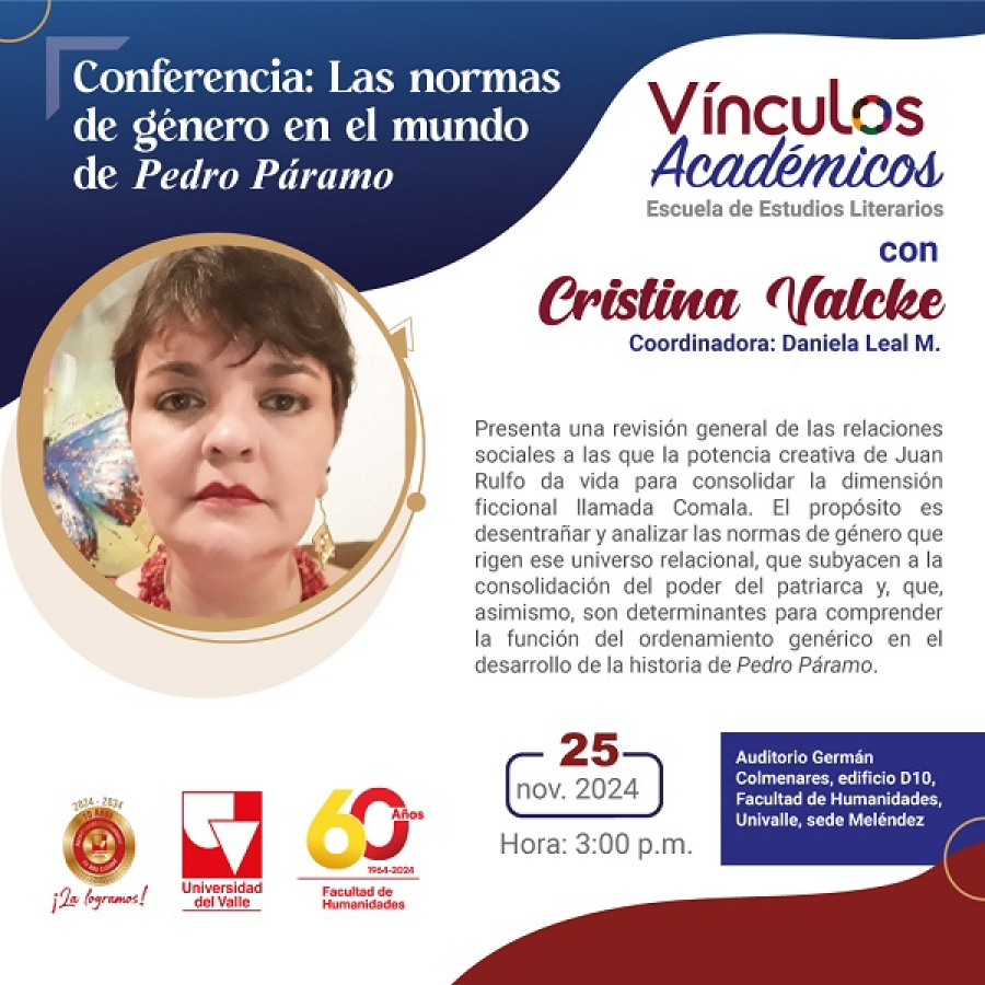 La Escuela de Estudios Literarios invita a la conferencia Las normas de género en el mundo de Pedro Páramo, a cargo de la profesora Cristina Valcke. La presentación de nuestra invitada estará a cargo de la estudiante Daniela Leal Montenegro.