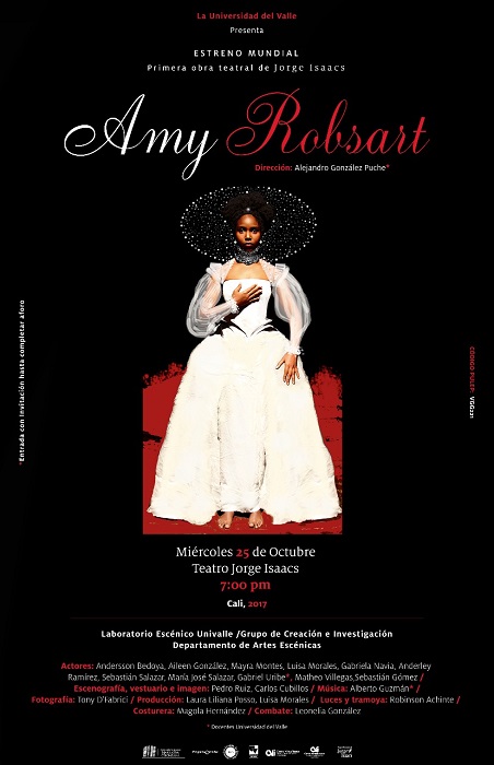 El Departamento de Artes Escénicas de la Universidad del Valle realizará el estreno mundial de Amy Robsart, la primera obra teatral escrita por Jorge Isaacs en 1859, este miércoles 25 de octubre, a las 7:00 p.m., en el Teatro Jorge Isaacs.