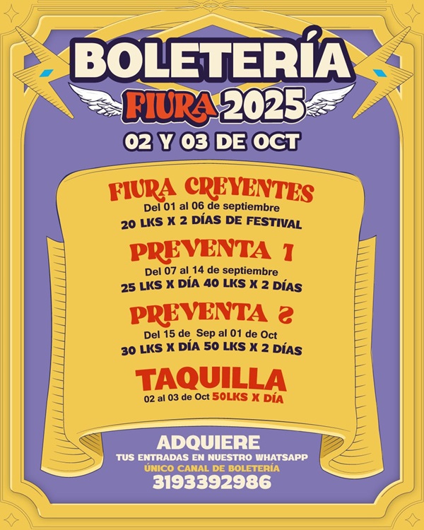 Las entradas podrán adquirirse únicamente a través de nuestro canal oficial de WhatsApp https://wa.me/573193392986