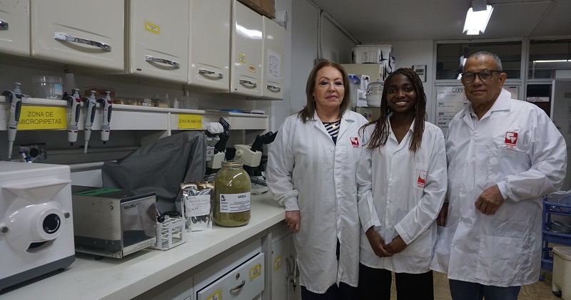 Cristina Ramírez, Yineth Viáfara y Germán Bolívar en el Laboratorio del Grupo de Investigación MIBIA.