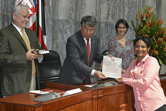 También se hizo una mención especial a la física y estudiante del Doctorado en Física Gladis Miriam Aparicio Rojas, ganadora del Premio al Inventor Colombiano 2014, por desarrollar un compuesto a base de hilo de araña para usarse en baterías recargables; a Lisandro Nuñez, por ser elegido como uno de los mejores médicos internos del país, según la Asociación Colombiana de Facultades de Medicina – Ascofame y a los arquitectos Mario Fernando Camargo Gómez y Luis Orlando Tombé, por alcanzar el primer lugar durante los Premios Holcim de Construcción Sustentable para Latinoamérica 2014.
