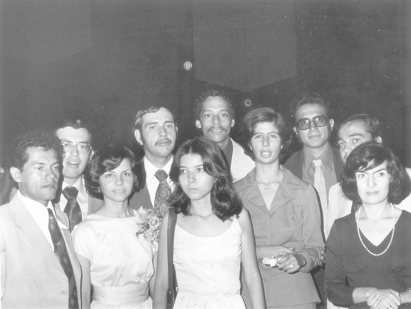Promoción Código 73 del Programa de Biología. De izquierda a derecho (del lector) , Leonel Vásquez, Efrain Rubio, Carmenza Varela, Felipe García, Patricia Chacón, Arnold Zea, Maria Claudia Hernández, Omar Kaffury, Fernando Gómez y la profesora Graciela Valderrama de Díaz.