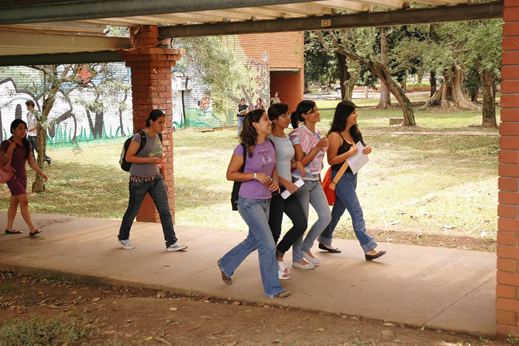 Entrada peatonal por la Avenida Pasoancho. Al fondo, Biblioteca Mario Carvajal. Campus Meléndez.
