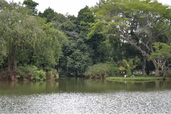 No todo es estudio y trabajo en la Universidad: amplias zonas verdes proveen el ambiente ideal para un corto y merecido descanso. En este ejemplo el lago del Campus de Meléndez.