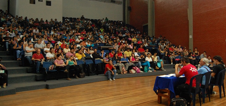 Fue invitado por la Federación de Estudiantes Universitarios (FEU) y el movimiento Marcha Patriótica para un conversatorio sobre “Orígenes e historia del conflicto social y armado en Colombia”. Pero acabó hablando de lo que se habla en los cafés, en las esquinas, en los medios: el conflicto, la paz, la guerra, la sinsalida, la barbarie.
