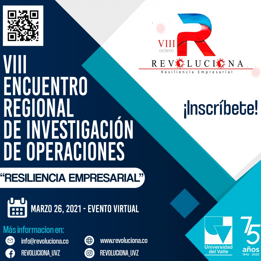 Conferencistas de México, Estados Unidos y Colombia dictarán conferencias en el “VIII Encuentro Regional en Investigación de Operaciones Revoluciona”, evento virtual organizado desde la sede Zarzal de la Universidad del Valle que se realizará el próximo 26 de marzo.