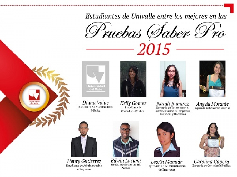 El Premio Saber Pro fue otorgado a Carolina Capera Osorio, Edwin Ricardo Lucumí Rivas, Kelly Gómez Muñoz y Diana Johanna Volpe García del programa de Contaduría Pública; Natali Estefania Ramírez Blandón de Tecnología en Administración de Empresas Turísticas y Hoteleras de la Sede Buga; Lizeth Carolina Mamian y Henry Alejandro Gutiérrez Flórez del programa de Administración de Empresas y Ángela Patricia Morante Consuegra del programa de Comercio Exterior.
