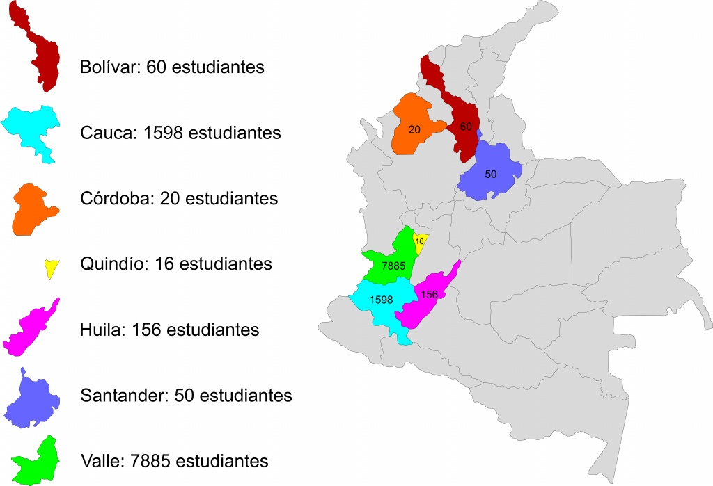 Cabe resaltar la gran participación de algunos colegios de la región por ejemplo: El colegio María Auxiliadora, de Cartago, con 421 estudiantes inscritos, la Institución Educativa Don Bosco, de Cali, con 300 participantes y la Institución Educativa San Agustín, de Popayán, con 223 alumnos inscritos.