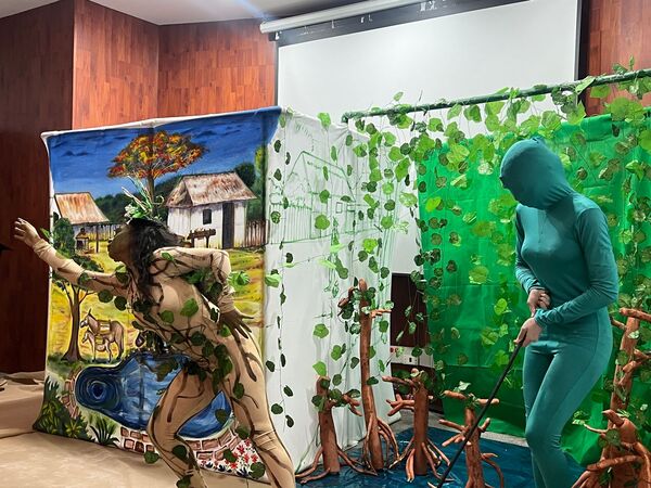 Durante el evento, estudiantes de la Universidad de Sucre realizaron una representación de la conservación del ecosistema.