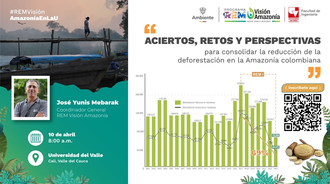 El evento es organizado por el Ministerio de Ambiente y Desarrollo Sostenible, la Universidad del Valle y el programa REM Visión Amazonía, una iniciativa que ha impulsado estrategias innovadoras para la conservación del bosque. Como invitado principal, estará José Yunis Mebarak, Coordinador General del programa REM Visión Amazonía, quien compartirá su visión sobre los logros obtenidos y los retos que aún persisten.