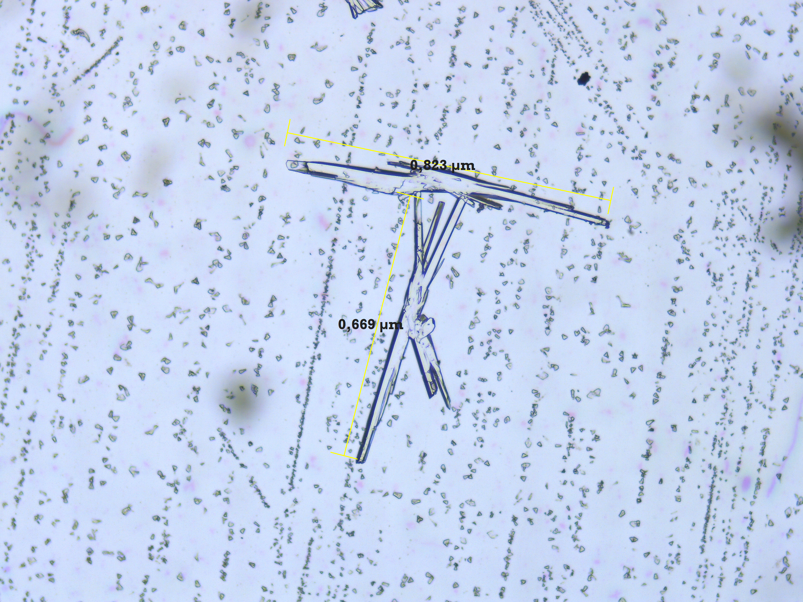 Formación de estructuras cristalinas vistas a través de proceso de Microscopía óptica. Crédito: archivo personal.