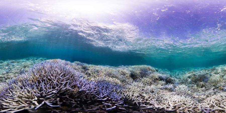 Arrecife completamente blanqueado en Isla Iguana Panamá. Foto: Juan Maté
