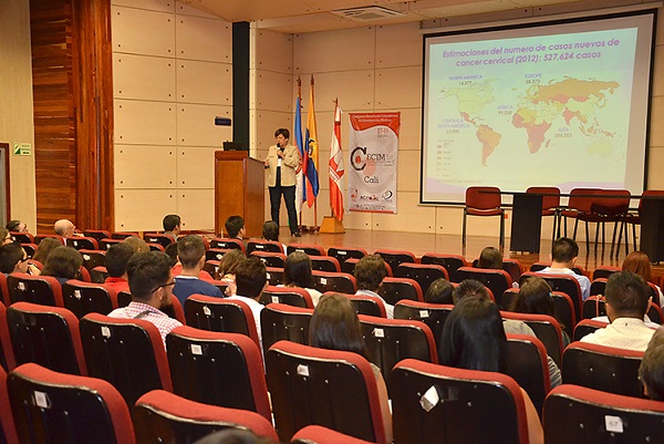 En su conferencia “Experiencias en Investigación en VPH y cáncer cervical”, la médico caleña habló ante un auditorio de jóvenes estudiantes procedentes de las 35 facultades de medicina del país en torno a sus 25 años de investigaciones sobre cáncer cervical.