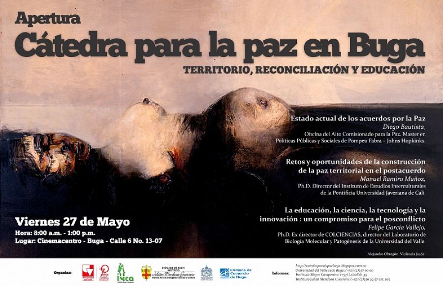 La Universidad del Valle, el Instituto Mayor Campesino - IMCA y el Instituto Julián Mendoza Guerrero de Buga, realizarán la Cátedra por la Paz en Buga, el viernes 27 de mayo, con el propósito de generar espacios académicos para que la comunidad de la región central del Valle del Cauca conozca, participe y se involucre en los procesos de construcción de paz desde las regiones.