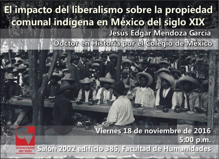 La Maestría en Historia del Departamento de Historia de la Universidad del Valle invita a la conferencia “El impacto del liberalismo sobre la propiedad comunal indígena en México del siglo XIX”.