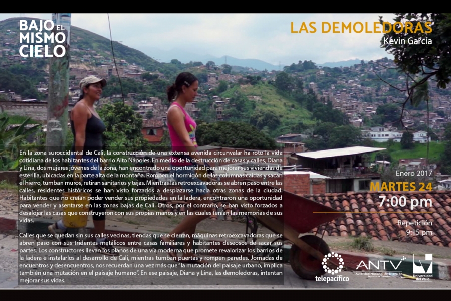 El martes 25 de enero se presentó el documental 'Las demoledoras', del director del programa académico de Comunicación Social de la Universidad del Valle, Kevin García. Esta pieza audiovisual hace parte de la serie documental 'Bajo el mismo cielo', emitida de lunes a viernes de 7.00 p.m. a 7:30 p.m, por el Canal Regional Telepacífico.