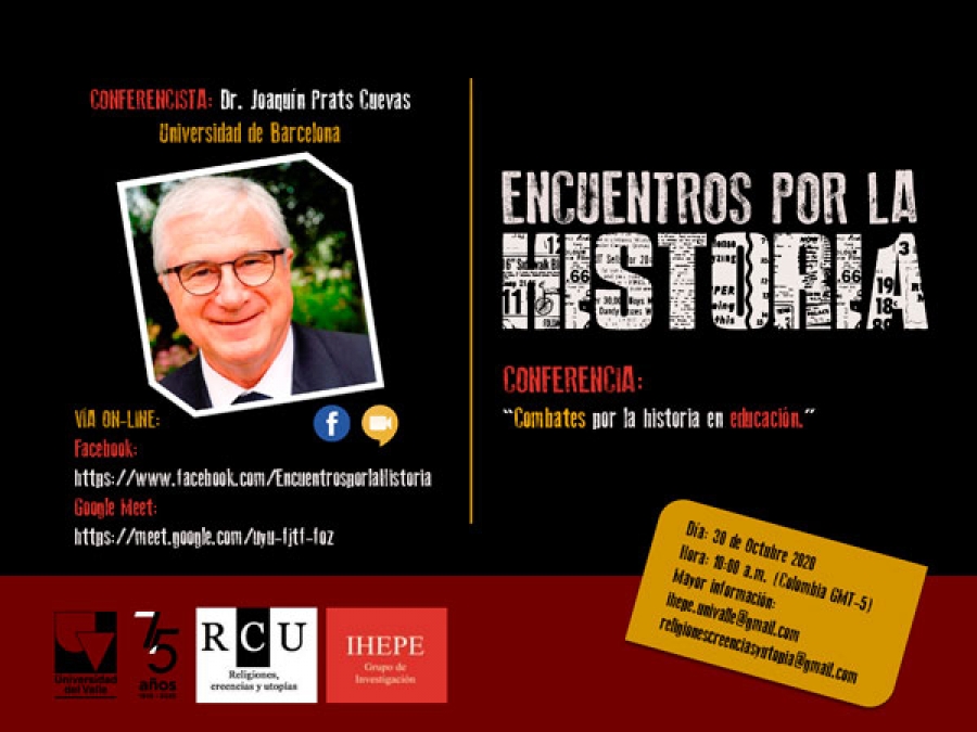 Después de 39 presentaciones realizadas desde el mes de mayo de 2020, que dan cuenta de los retos, las agendas, las investigaciones y las posibilidades de reflexión de la Historia y de la Enseñanza de la Historia, este viernes el equipo académico de Encuentros por la Historia invita a la conferencia de cierre de este primer ciclo de conferencias con la presentación del Dr. Joaquín Prats Cuevas.