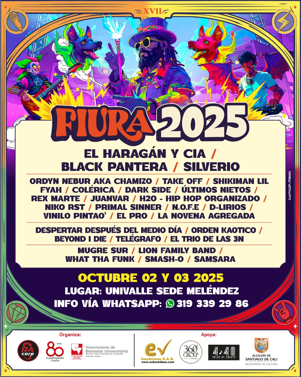 El Festival Internacional Unirock Alternativo (FIURA) llega este 2 y 3 de octubre de 2025 a la Universidad del Valle – Sede Meléndez (Cali) con más de 30 proyectos de música independiente.