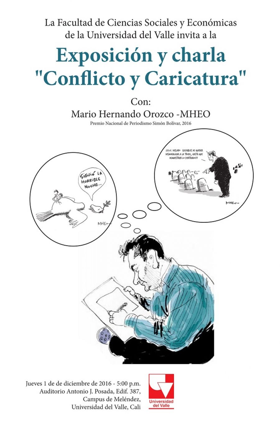 El próximo jueves 1 de diciembre a las 5:00 p.m. en el Auditorio Antonio J. Posada, edif. 387 de la Facultad de Ciencias Sociales y Económicas de la Universidad del Valle, se llevará a cabo la charla "Conflicto y caricatura", con la presencia de Mario Hernando Orozco, más conocido como “Mheo”, caricaturista pereirano que ha sido galardonado en múltiples ocasiones con el Premio Nacional de Periodismo Simón Bolívar.