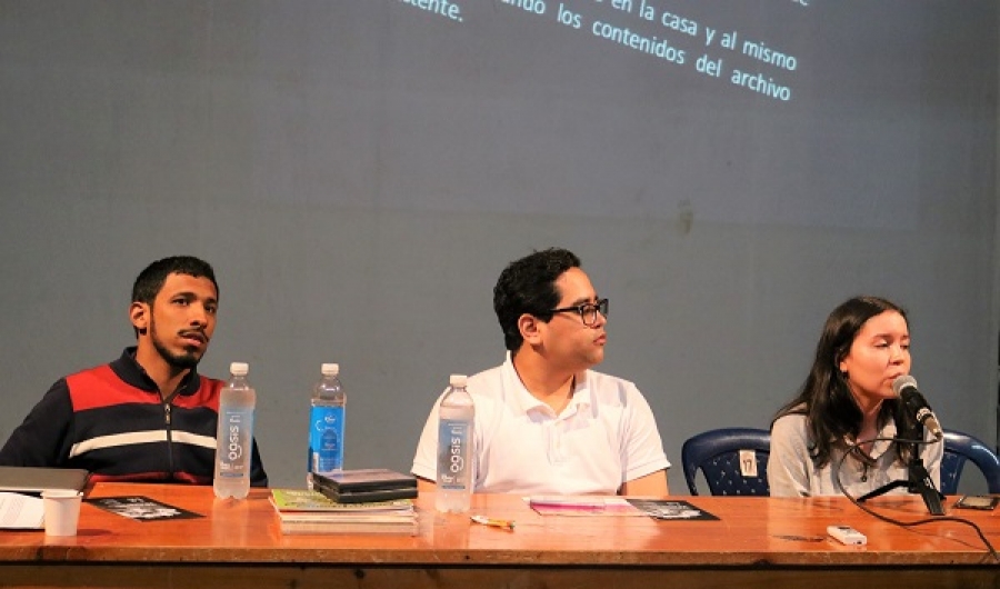 El investigador Mauricio Duran del Centro de Investigación Teatral Enrique Buenaventura -CITEB, la Investigadora Vanessa Sandoval de 'Lugar a Dudas' y su centro de documentación y Pavel Andrés Vernaza coordinador del Centro de Documentación e Investigación del Museo La Tertulia, fueron los ponentes de la charla.