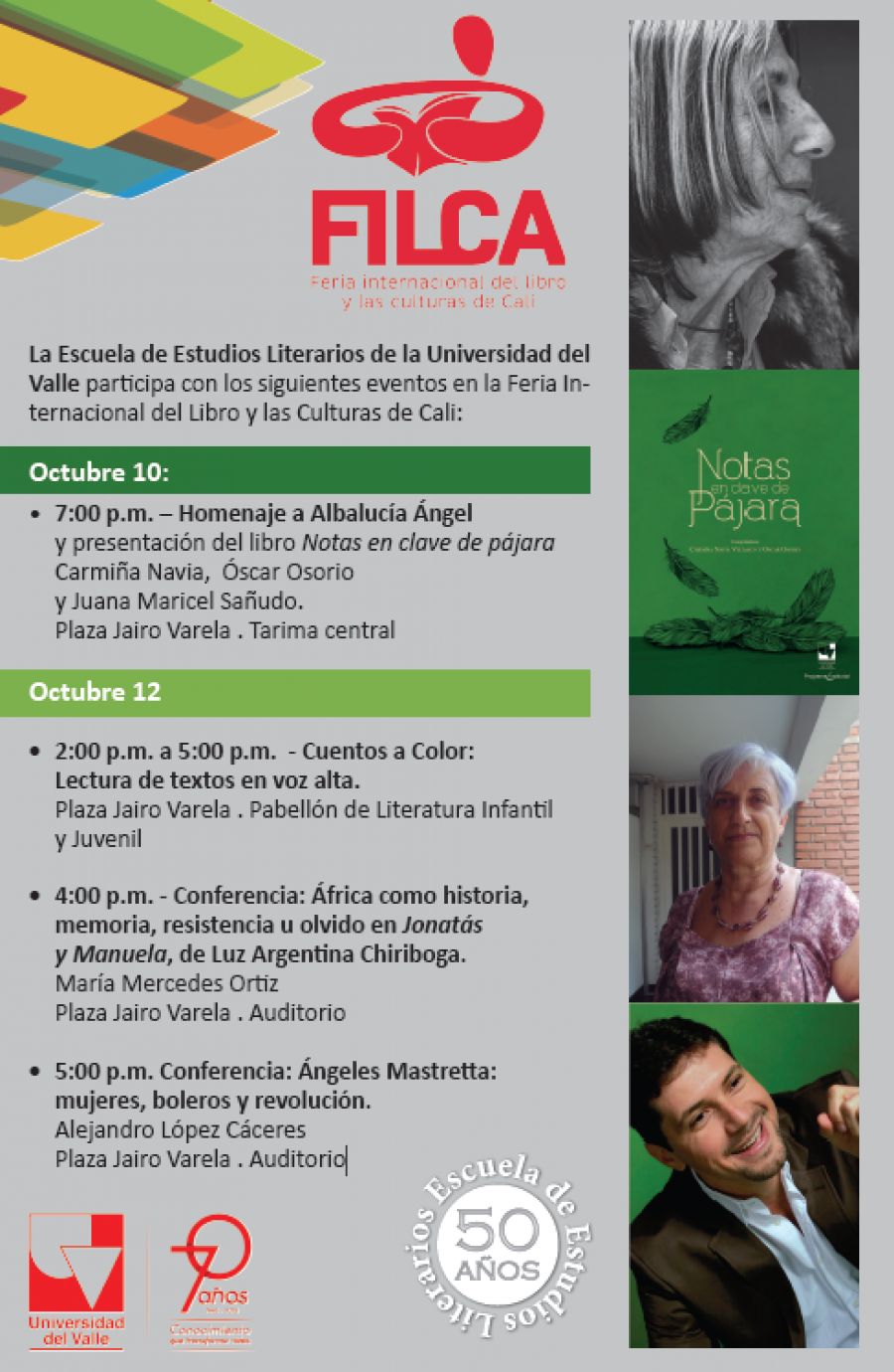 La Escuela de Estudios Literarios de la Universidad del Valle participa en la Feria Internacional del Libro y las Culturas de Cali-FILCA, que se realiza del 8 al 12 de octubre de 2015.