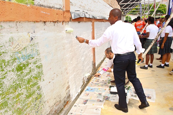 Durante el acto, cada miembro del gabinete le entregó una brocha de pintura a un medio de comunicación, entre los que asistieron El Tiempo, Caracol Radio, Telepacífico, Canal 14, Semana Educación, Diario El País, Diario Occidente, Cali TV, Emisora Policía Nacional, Olimpica Stereo y Radio Tiempo. Luego, tanto miembros del gabinete, como medios de comunicación, estudiantes y padres de familia, le dieron el primer brochazo al mural.