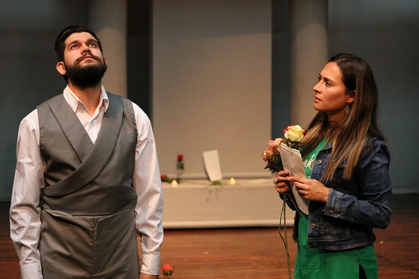Afuera del Auditorio 4, llueve más fuerte. La Plazoleta de Ingenierías, un sitio habitualmente concurrido y lleno de gente, está a solas. Adentro, en la sala de teatro, hace algo de calor. Esto no parece afectar a los actores.