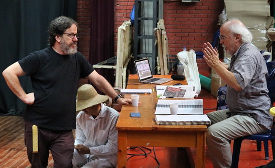 Alejandro González Puche se mueve por todo el escenario, da indicaciones, dice cómo deben moverse por el espacio y regresa a la mesa, donde está sentado el maestro Alberto Guzmán, siguiendo la música de la ópera, repasando la entonación y letra de los cantantes. Junto a ellos están los asistentes tomando atenta nota de cada palabra que ambos dicen. A un costado está sentada Ma Zhenghong con una libreta y un lapicero. Con cada movimiento en el escenario toma apuntes y con rapidez llena varias páginas.