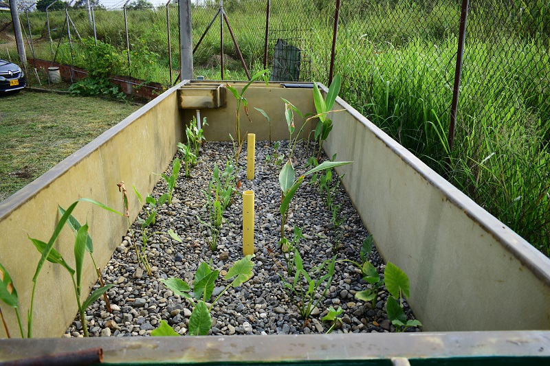 “En nuestros humedales usamos grava y un pool de plantas compuesto por tres especies: Heliconia psittacorum, Colocasia esculenta y Sagittaria latifolia, todas nativas y con la capacidad de absorber el exceso de nutrientes e, incluso, metales pesados”, aclaró el investigador Andrés Fernando Toro Vélez, coordinador técnico del proyecto.