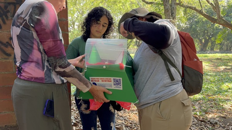 En respuesta a esta situación, docentes investigadores de la Universidad del Valle —Mauricio Quintero Ángel, Alexander Pereira Mosquera y Alan Giraldo López— junto con Rubén Eduardo Varela Miranda, de la Universidad Santiago de Cali, desarrollaron un dispositivo para la captura y control de esta plaga.