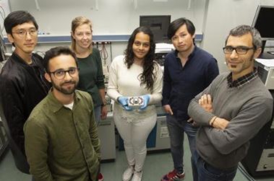 *Pie de foto: Grupo de investigadores de NanoGUNE que desarrolla el dispositivo MESO. Al centro Isabel Arango, a la Izquierda Felix Casanova