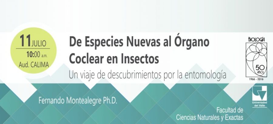 El 11 de Julio, Fernando Montealegre dictará la conferencia De especies nuevas al órgano coclear en insectos: Un viaje de descubrimientos por la entomología, donde resaltará la importancia de su paso por la Sección de Entomología de la Universidad del Valle y mostrará otros campos de investigación en los que ha extendido.