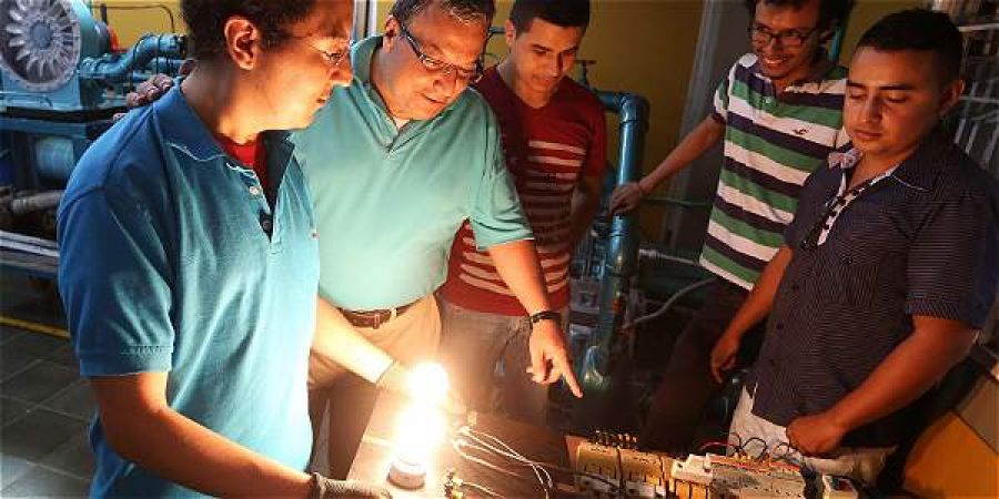 Todo funciona en un parpadeo. Bombillos, de 100 vatios cada uno y conectados al final del proceso, se encienden cada 30 segundos. Claro que en el laboratorio, esta fase termina con la activación de un banco de resistencias. Es la prueba irrefutable de que en este salón se transforma la energía hidráulica en mecánica mediante una turbina, para luego pasar a un generador que la convierte en energía eléctrica ¡Eureka!