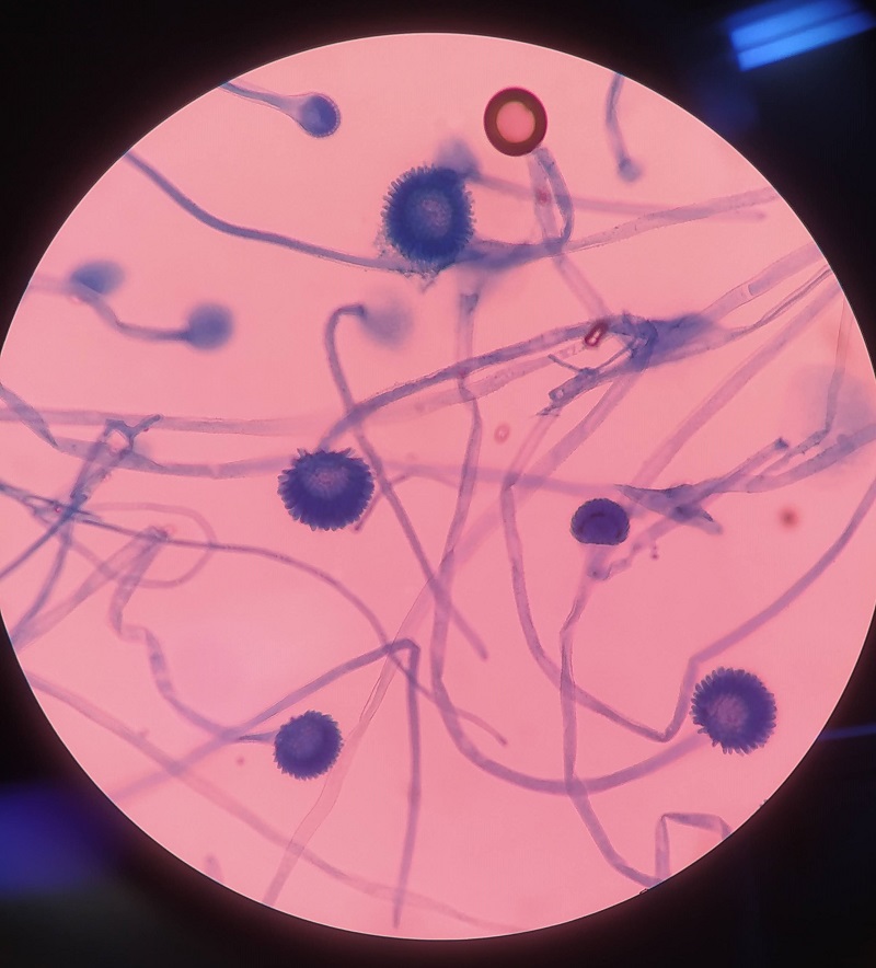 Vista en estereoscopio del hongo Aspergillus oryzae Fuente: Fotografías por Grupo MIBIA