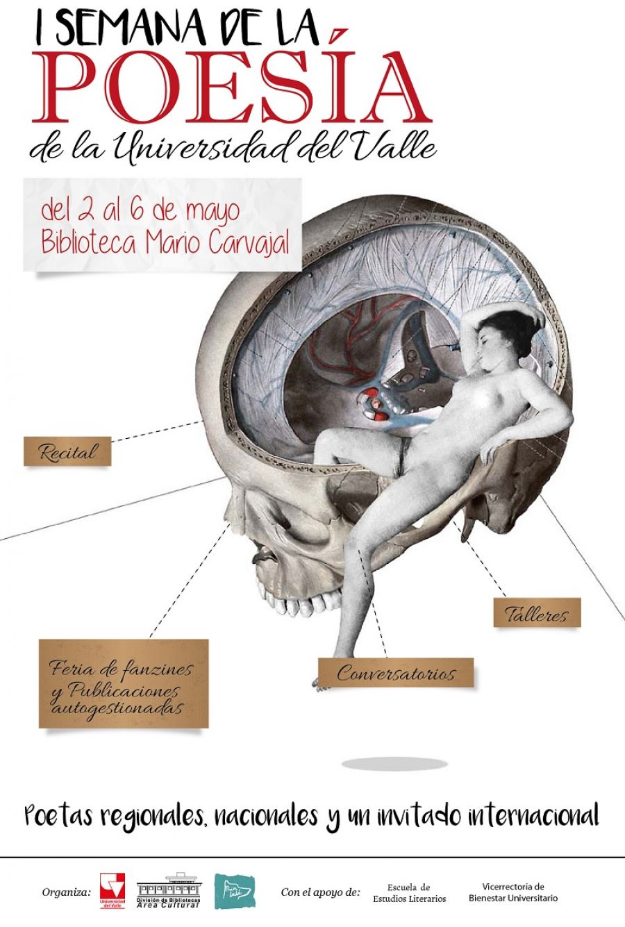 Como parte de este programa, el Área Cultural de la División de Bibliotecas y el colectivo estudiantil Prin Lalá, con el apoyo de la Vicerrectoría de Bienestar Universitario y la Escuela de Estudios Literarios realizarán la I Semana de la Poesía de la Universidad del Valle.