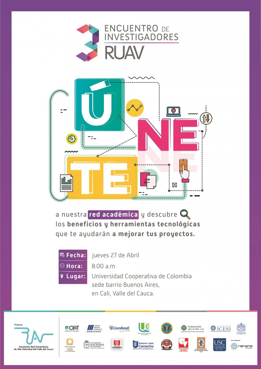 Hasta el 17 de marzo, estará abierta la convocatoria de ponencias para el 3º Encuentro de Investigadores RUAV, que se cumplirá el jueves 27 de abril de 2017, en la Universidad Cooperativa de Colombia sede Cali.