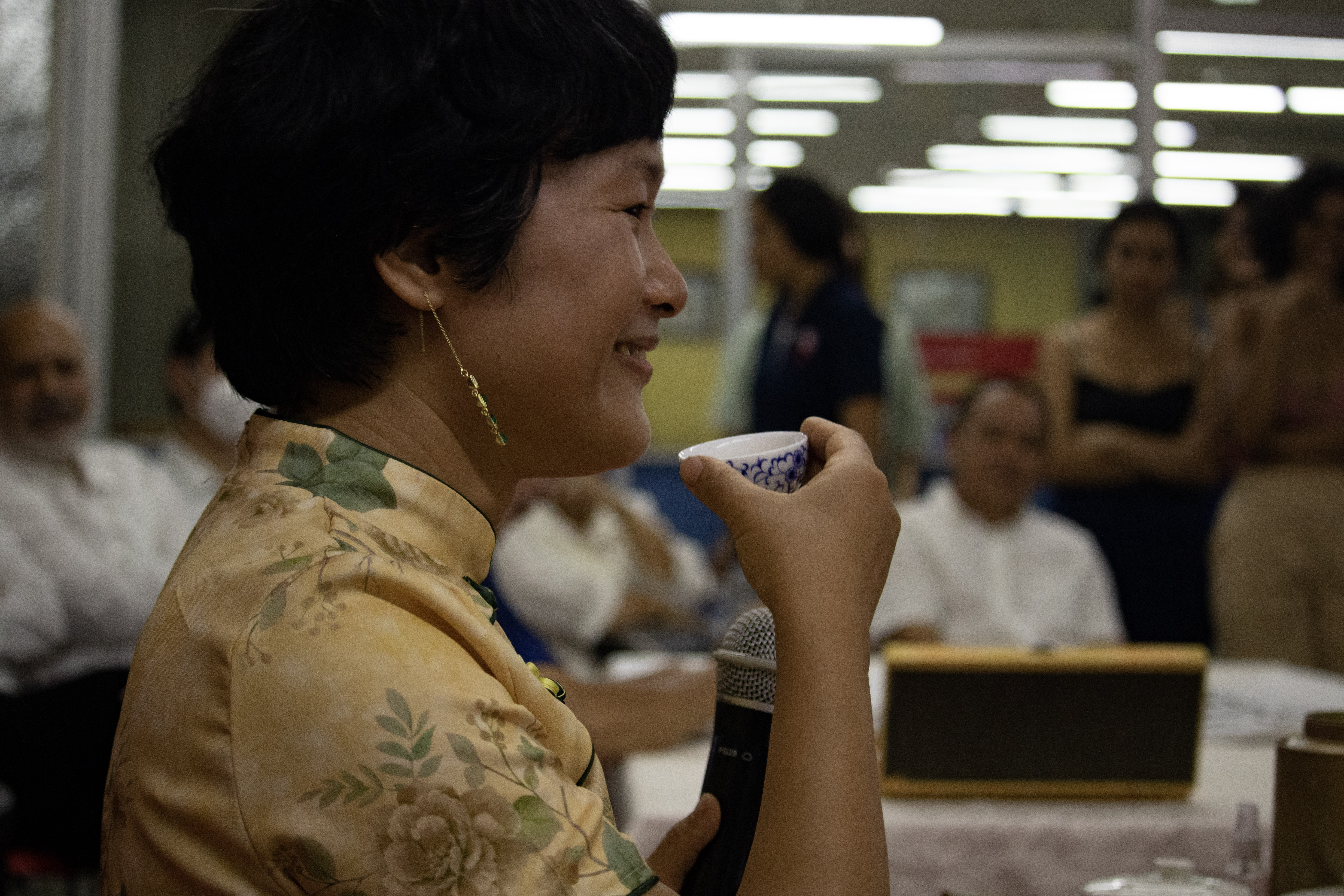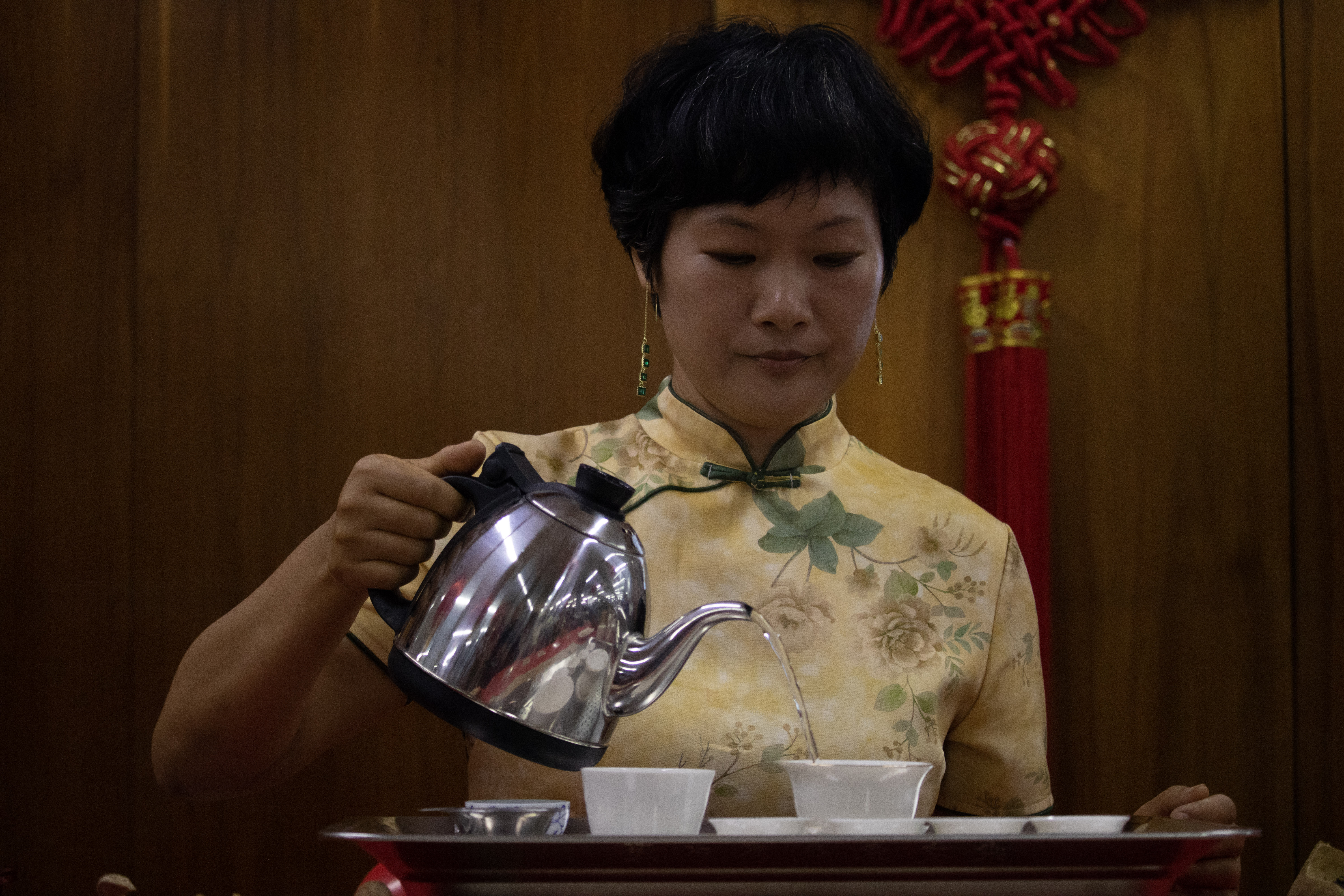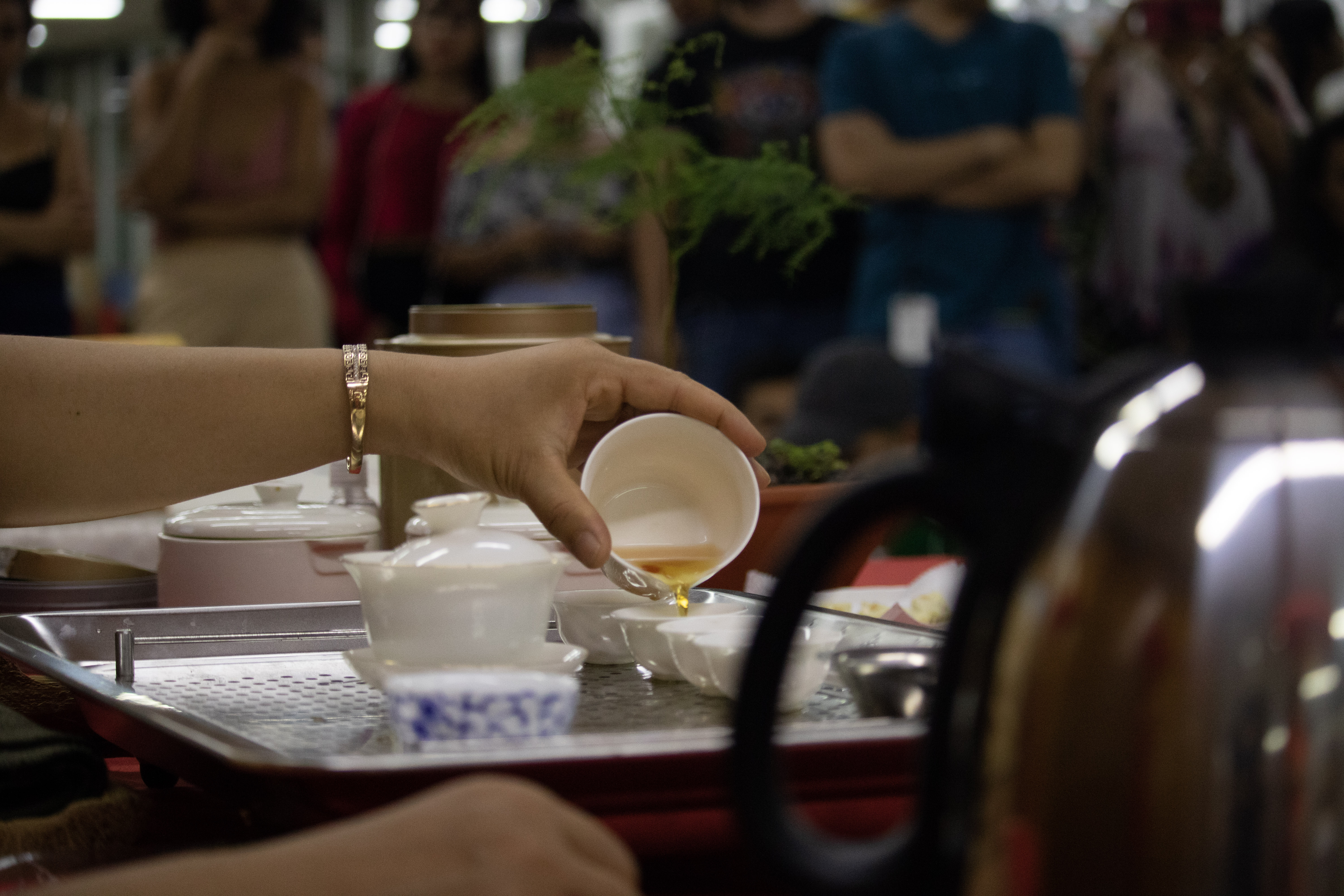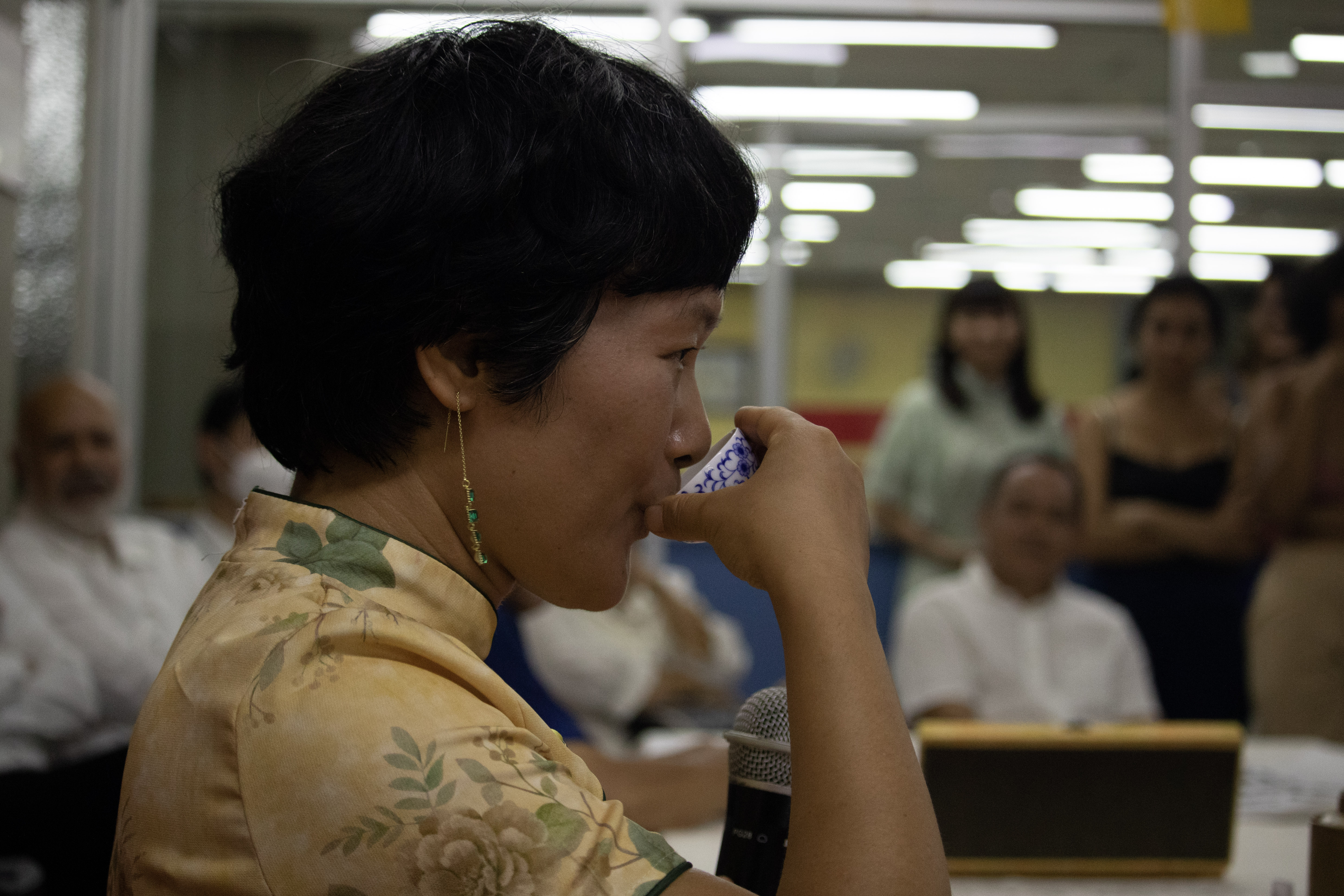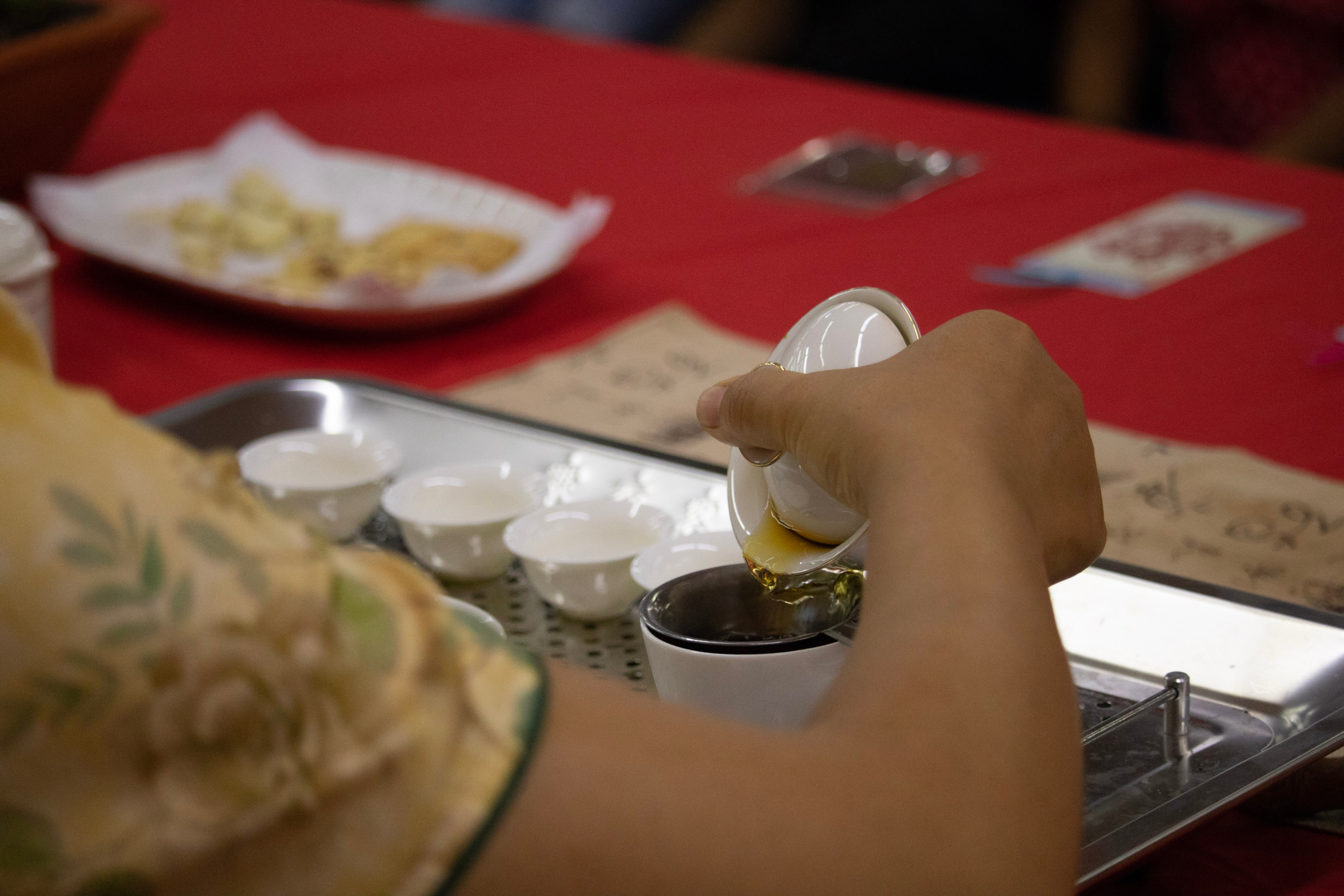 En silencio, frente a la mesa principal, espera Candy, una mujer cuyo gesto expresa la dulzura del apelativo con el que la llaman. Seguramente, su nombre tiene el mismo origen que las briznas secas de té que contempla mientras la funcionaria de la División de Bibliotecas hace un periplo por los tipos de té y habla sobre los pasos imprescindibles para presentar respetos a los invitados y obtener los mejores sabores del producto.