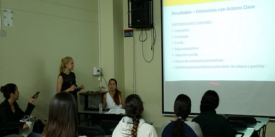 La médica Shirley Lennon, magíster en salud pública e investigadora del Instituto Cisalva de la Universidad del Valle, quien coordina el proyecto, presentó la ponencia “Salud mental de mujeres que experimentan violencia de pareja". En dicho estudio se propuso indagar los diferentes síntomas psicosomáticos y de salud mental que se manifiestan en las mujeres que son sobrevivientes de violencia de pareja en Cali y Tuluá, con el fin de establecer una base para contextualizar la situación de las mujeres durante el diseño de intervenciones en salud mental, como la que se llevará a cabo en el proyecto que financia Colciencias.