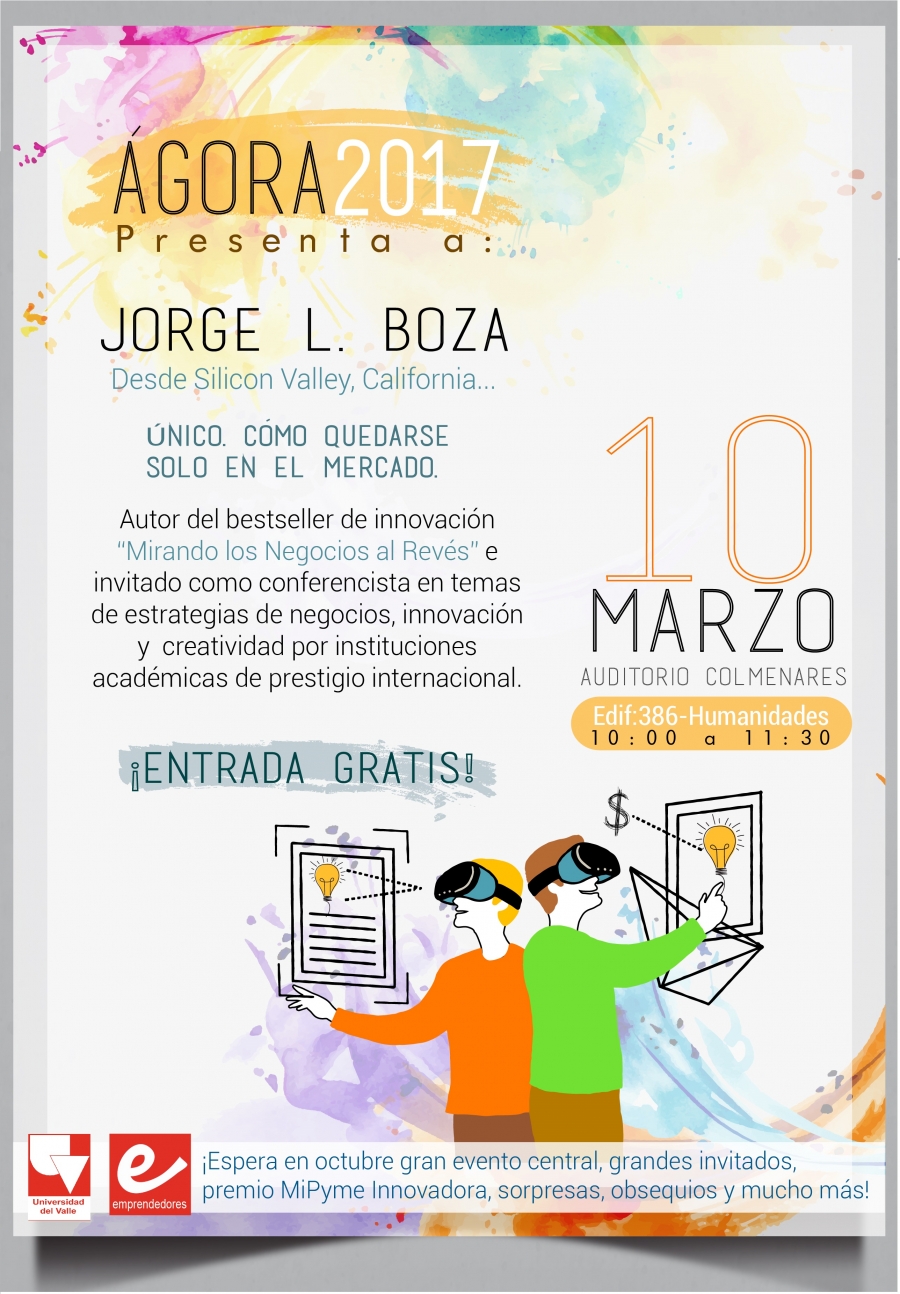 El Programa Emprendedores de la Universidad del Valle invita a la conferencia ''Único, cómo quedarse solo en el mercado'', que se realizará este viernes 10 de marzo de 2017, a las 10:00 a.m., en el Auditorio Germán Colmenares, Edificio 386, Campus de Meléndez.
