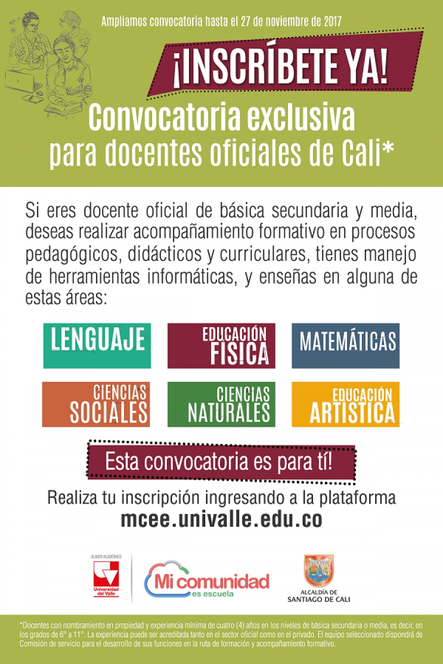 La Secretaría de Educación Municipal y la Universidad del Valle amplían convocatoria para que docentes oficiales de básica secundaria y media de Santiago de Cali participen de la convocatoria de DOCENTES TUTORES.