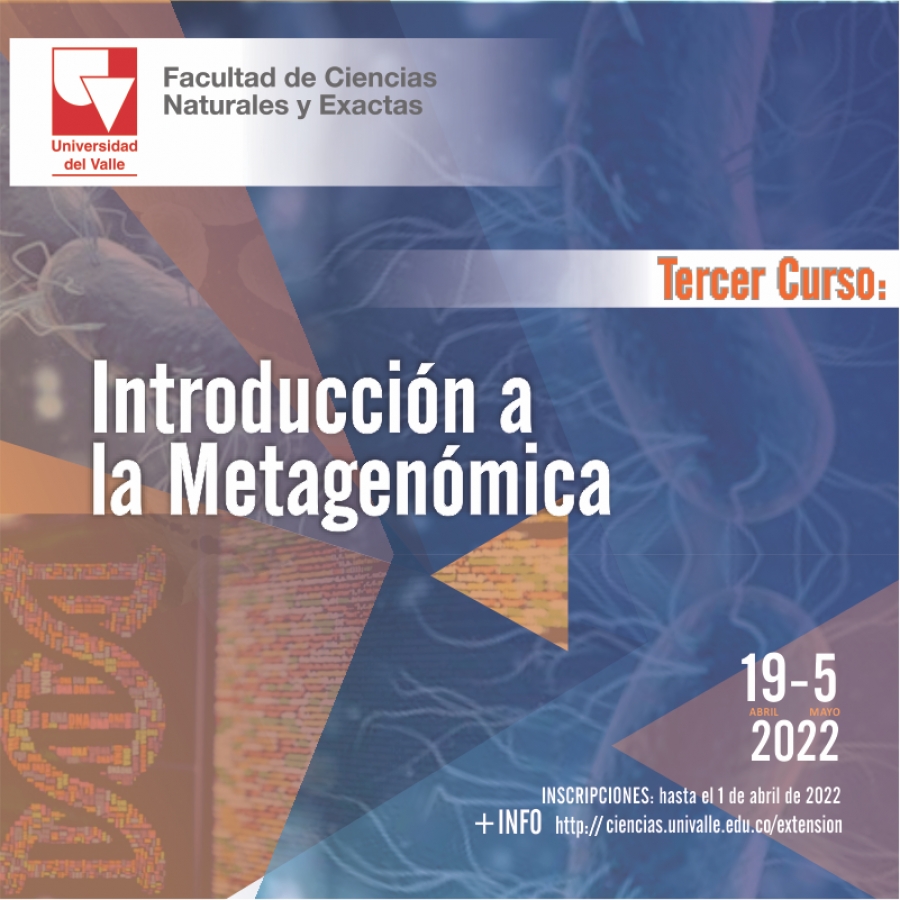 El programa de Educación Continua de la Facultad de Ciencias Naturales y Exactas informa que se encuentran abiertas las inscripciones para el Tercer Curso virtual Introducción a la Metagenómica ofrecido por el Departamento de Biología de la Universidad del Valle.