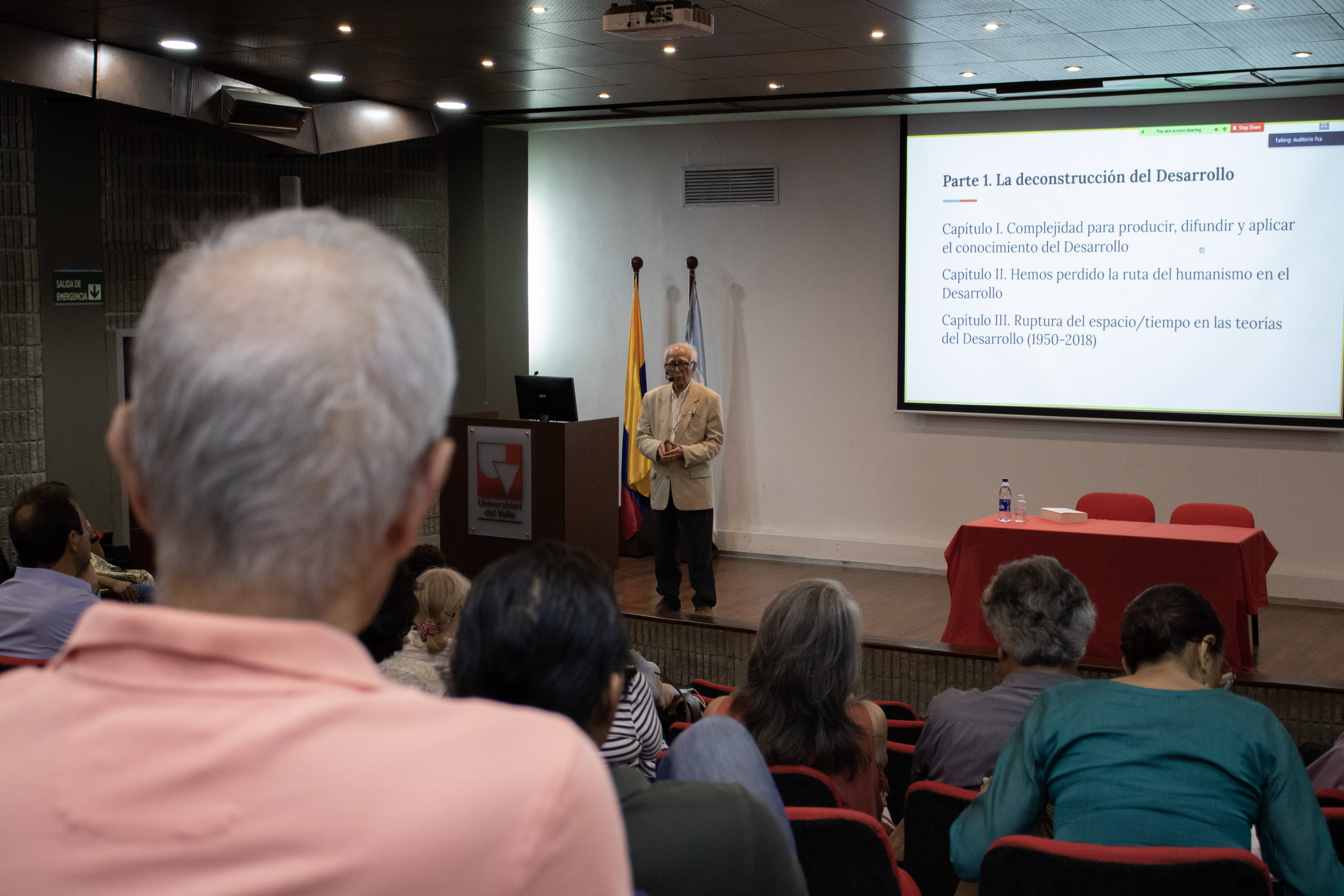 Como un encuentro reflexivo en torno al humanismo y los retos de la producción de conocimiento en el contexto actual se vivió la visita del presidente de la Academia Colombiana de Ciencias Económicas -ACCE Édgar Revéiz a la Universidad del Valle para presentar su nuevo libro “Deconstrucción y concordancia del desarrollo”.