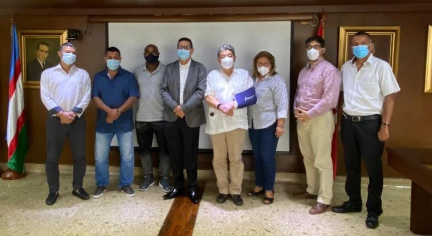 En la foto, de derecha a izquierda: El presidente de Sintraunal Jhon Alexander Chalarca , Harold Tulande, Dilman Paz, el rector Edgar Varela, el vicerrector administrativo Rubén Darío Echeverry, la jefa de División de Recursos Humanos Ana Milena Sandoval, el coordinador del Área de Análisis y Estadística de la Oficina de Planeación y Desarrollo William Sánchez y Edwin Rebolledo.
