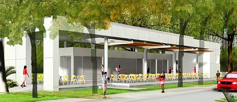 En la zona de la Bahía Pasoancho, dentro del Campus, se construirá una cafetería de medianos servicios – tipo II-, para que los estudiantes puedan hacer uso de los espacios en condiciones de asepsia y comodidad con capacidad de uso de entre 60 y 80 usuarios.