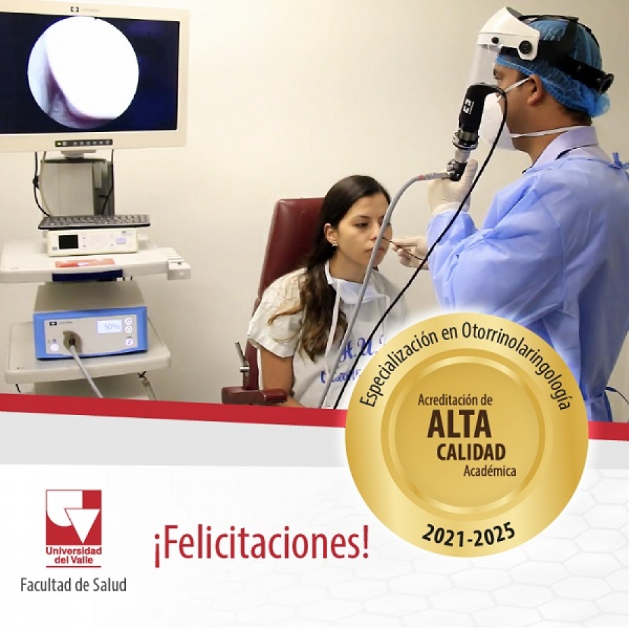 El Ministerio de Educación Nacional le otorgó a la Especialización en Otorrinolaringología de la Escuela de Medicina la Acreditación que certifica la Alta Calidad Académica de este programa de posgrado, por un término de cuatro años mediante la Resolución 22995 del 30 de noviembre del 2021.