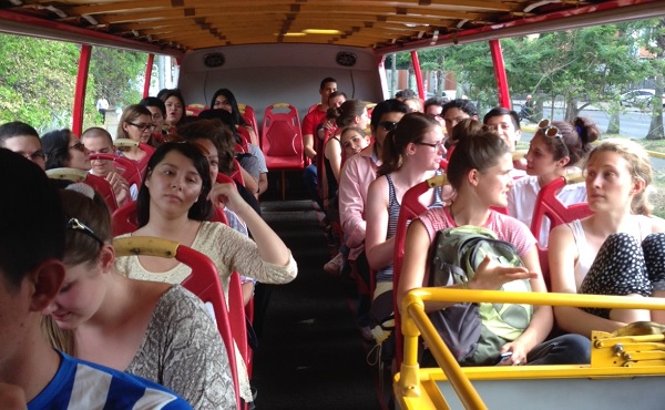La bienvenida fue el martes. Durante una hora recorrieron el campus universitario, se les proyectó un video institucional y se fueron a almorzar a los restaurantes populares de la Playita. En la tarde, a pesar de la humedad y el calor, no perdieron el entusiasmo y tomaron un bus de dos pisos en el que hicieron el recorrido por los sitios emblemáticos de la ciudad.