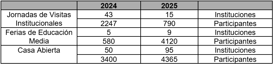 Las acciones de acompañamiento y visibilización institucional de la oferta de pregrado se detallan en la siguiente tabla: