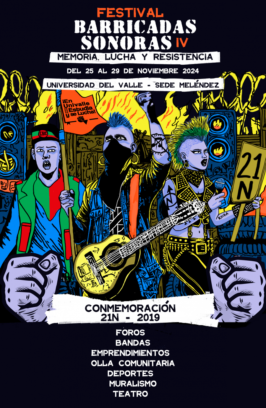 Este festival, que nació en 2019 en solidaridad con los estudiantes de Univalle afectados durante el estallido social del 21 de noviembre, conmemora cinco años de esta coyuntura histórica del Paro Nacional. Con una programación diversa que incluye actividades culturales, académicas y artísticas, el evento busca reflexionar sobre la memoria, la resistencia y las luchas sociales, al tiempo que fomenta la apropiación y resignificación del campus universitario.