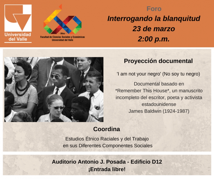 El ‘Foro: Interrogando la Blanquitud’ será el próximo viernes 23 de marzo, desde las 2:00 p.m, en el Auditorio Antonio J. Posada del Campus de Meléndez de la Universidad del Valle, coordinado por el Grupo de Investigación de ‘Estudios Étnico Raciales y del Trabajo en sus Diferentes Componentes Sociales’ de la Facultad de Ciencias Sociales y Económicas.