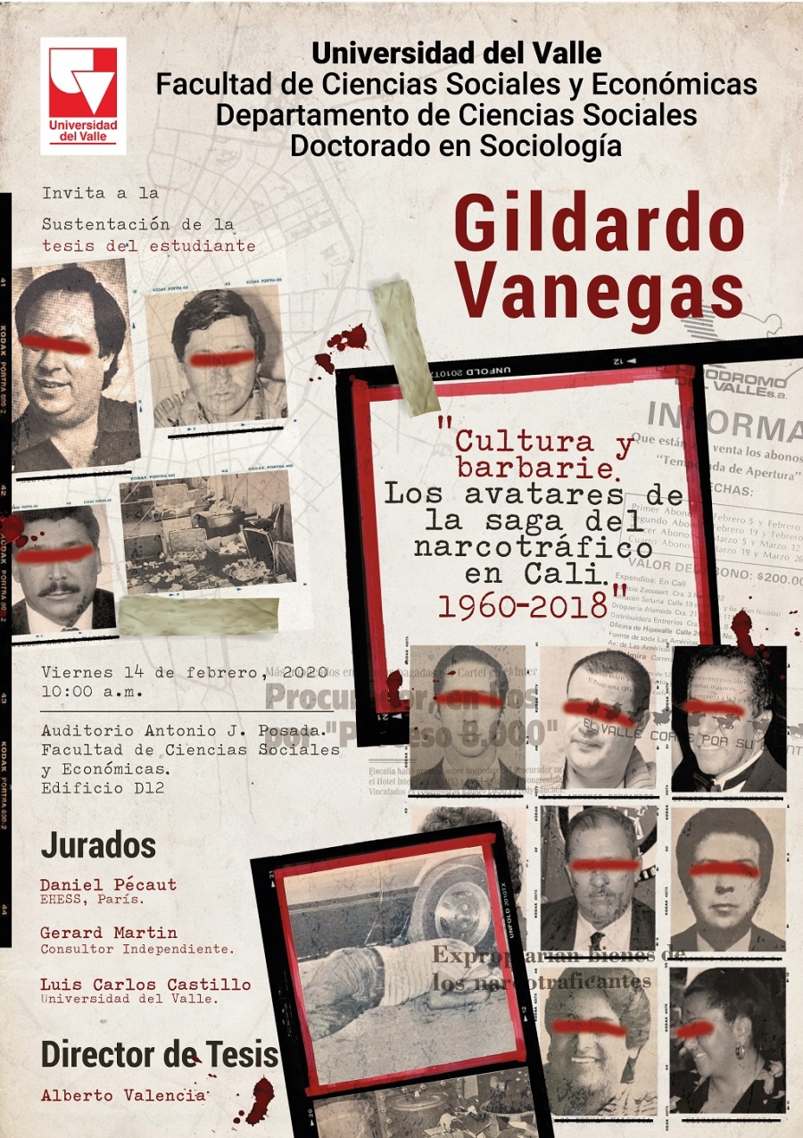 Una investigación sobre la estructura y funcionamiento del narcotráfico en Cali y Colombia, desde 1960 hasta el 2018, será presentada este viernes 14 de febrero de 2020, como sustentación de la tesis del estudiante del Doctorado en Sociología de Univalle Gildardo Vanegas Muñoz.